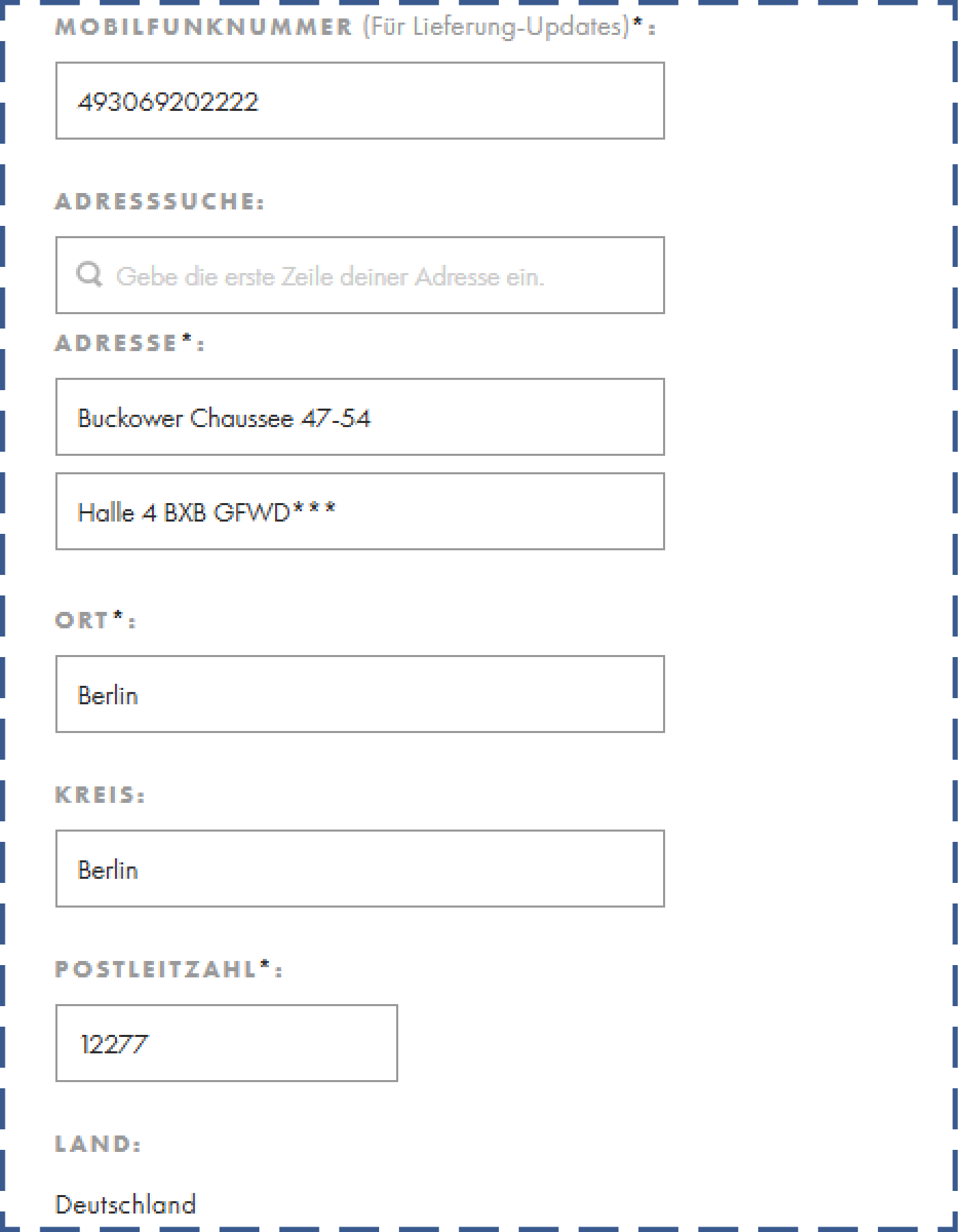 Важно! При оформлении заказа на склад в Берлине обязательно нужно указывать название организации – «BXB».