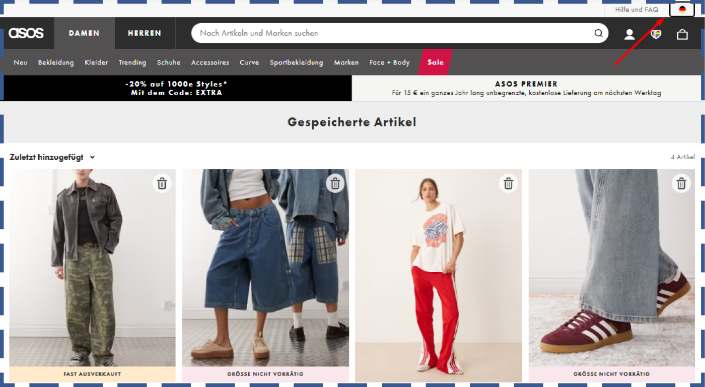 1. На сайте выберите страну для шопинга. Для этого нажмите на флаг в правом верхнем углу и в списке стран найдите США или Германию – выбор страны зависит от категории интересующего вас товара.