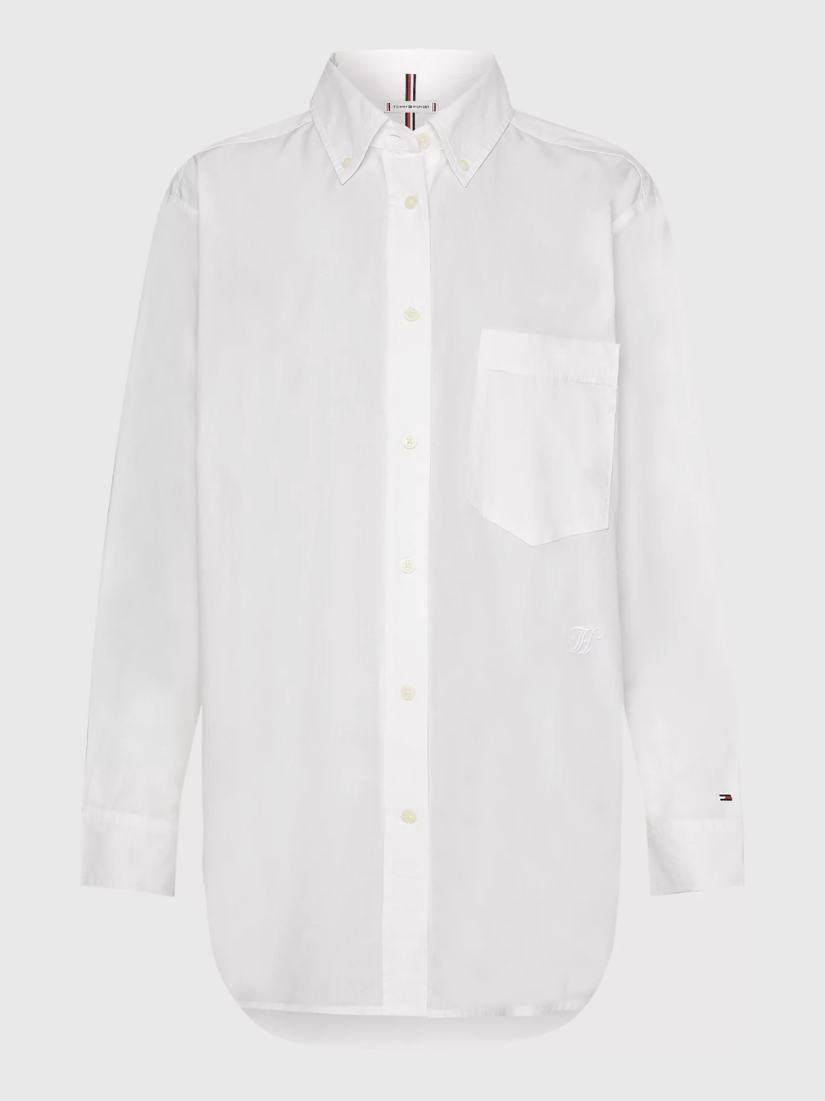 Подстать стилю «преппи» и белая женская рубашка одноименного бренда с аккуратным логотипом на рукаве. Выписываем за 6 527 рублей по курсу ЦБ.