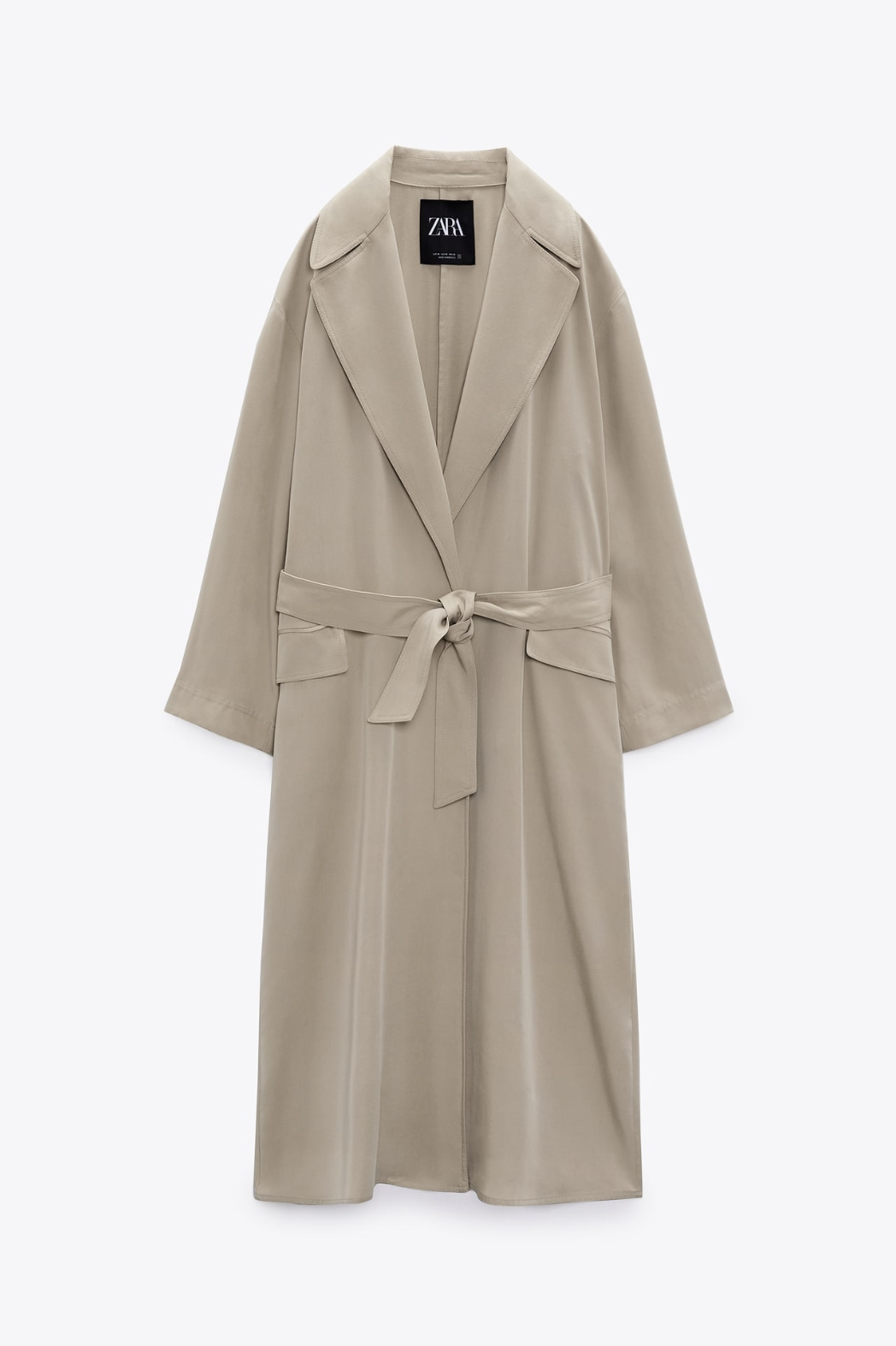 Первая вещь этой подборки — легендарный бежевый тренч в прочтении ZARA. Удлиненную модель с поясом по курсу ЦБ РФ $1=59,88 рублей сейчас можно купить в американском онлайн-магазине бренда за 4 784 рубля.